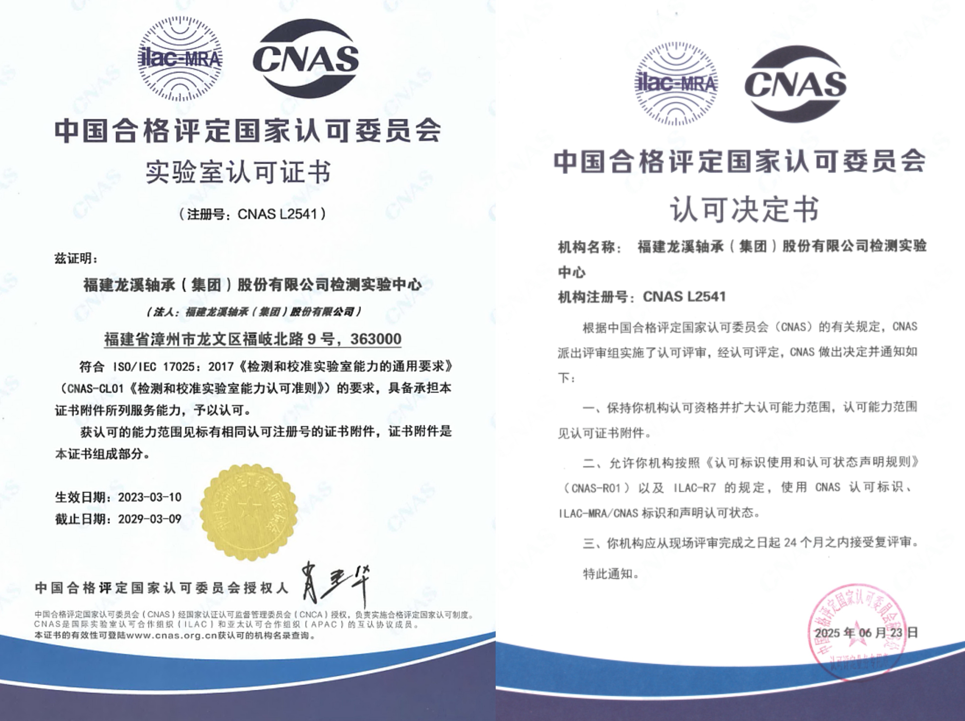 近日,龍軸集團檢測實驗中心順利通過中國合格評定國家認可委員會(CNAS)擴項評審,獲得認可決定書和實驗室認可證書,標志著公司在軸承可靠性驗證、材料微觀分析等核心技術領域實現重大突破,已構建覆蓋從材料到產品的檢測服務體系,檢測能力達到國內先進水平。